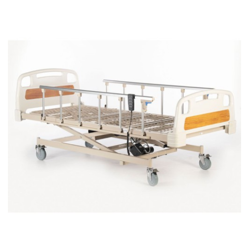 This bed is ideal for patients who have difficulty getting in & out of bed.Includes foldable aluminum guardrails & mattress.