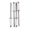 - The riveter has exchangeable nozzles for accommodating different rivet sizes.