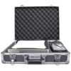 The hard shell carry case is constructed from durable plastic materials with stainless-steel corners and die-cut foam interiors for added cushioning.