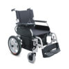 Foldable electric wheelchair with flip back armrests. detachable footrests & fold back backrest.