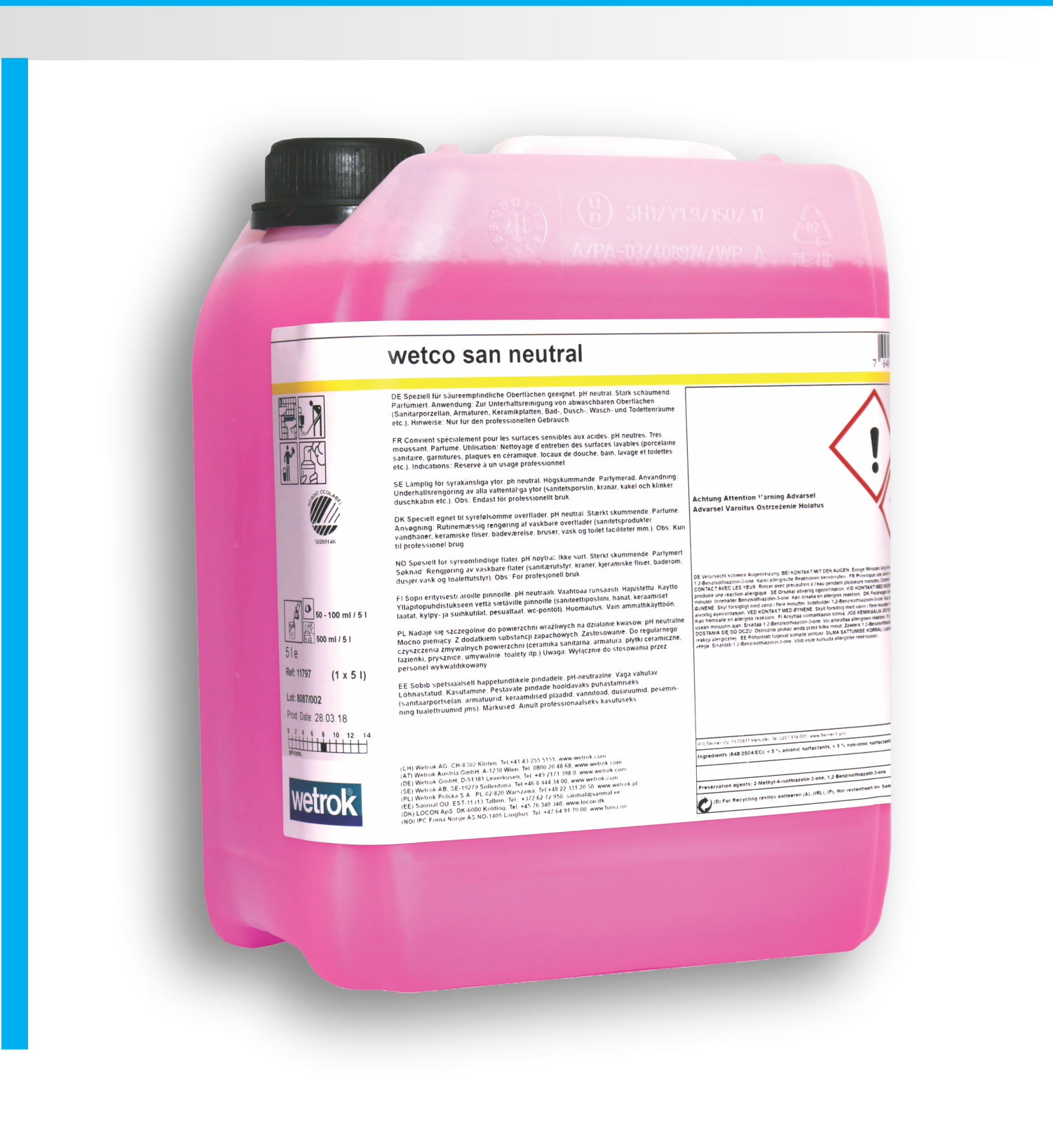 Wetrok Wetco San Neutral is an environmentally friendly maintenance cleaner for Washrooms.