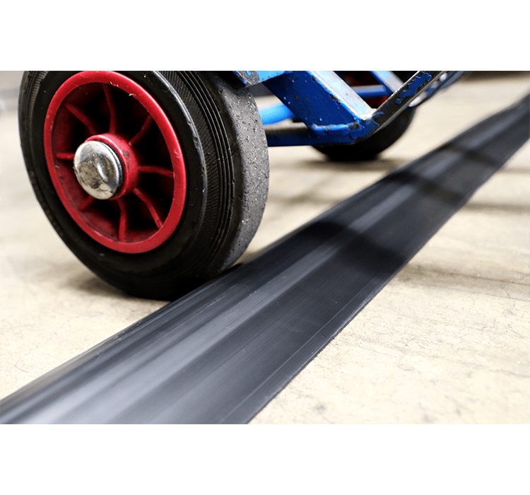 Special mat designed to be laid over cables for protection from tripping hazards due to loose cables lying around, with edge in hazard stripe. 4.5 Metre Extremely durable nylon surface in dappled colour shades. Cleated non-slip backing made from durable nitrile rubber with integrated cable run. Light-resistant and suitable for underfloor heating. Anti-static 4,5m