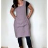Pinafore aprons, sometimes called a smock or Japanese apron, are one size, and easily slip over your head providing full body coverage. They are stylish and comfortable with wider fabric straps on your shoulders. They easily accommodate different body shapes.