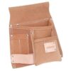 Thoughtfully created to provide a durable, compact and highly practical carrying solution for tradespeople and DIY enthusiasts who need quick access to essential hand tools, this leather five-pocket tool pouch combines traditional materials with construction details that extend service life and improve on-site efficiency. The chrome-tanned leather resists abrasion and retains its shape while the rivet reinforcement at key stress points and reinforced stitching ensure the pouch withstands repeated use and heavy odds of nails, screws and small fittings. Sized to sit comfortably on most work belts at 250 by 210 millimetres and weighing approximately 340 grams, it offers an unobtrusive profile that does not impede movement yet delivers generous capacity across five dedicated compartments plus an integrated loop for secure attachment of a hammer or for hanging from a belt, noting that the belt itself is not included. The compartment arrangement promotes intuitive organisation, allowing users to segregate nails, fasteners, pencils and small hand tools so that muscle memory reduces search time and avoids interrupting workflow. Designed with ergonomics and practicality in mind, the pouch balances accessibility with protection, keeping sharp or heavy items close at hand but safely housed to prevent accidental drops or wear to clothing. Its brown finish provides a professional, hard-wearing look that shows character rather than premature wear, while the compact nature of the pouch makes it equally suitable for contractors who favour minimal loadouts and hobbyists tackling weekend projects. Maintenance is straightforward: occasional cleaning and leather care will preserve flexibility and water resistance, prolonging lifetime performance. Whether fitted to a full tool belt system or used as a stand-alone accessory, this robust leather pouch is engineered to reduce trips to a toolbox, keep essential items within immediate reach and support a more productive, comfortable working day. It is particularly well suited to carpenters, electricians and plumbers who value organised storage on the move, and its robust construction copes with typical site conditions including occasional wet or dusty environments.