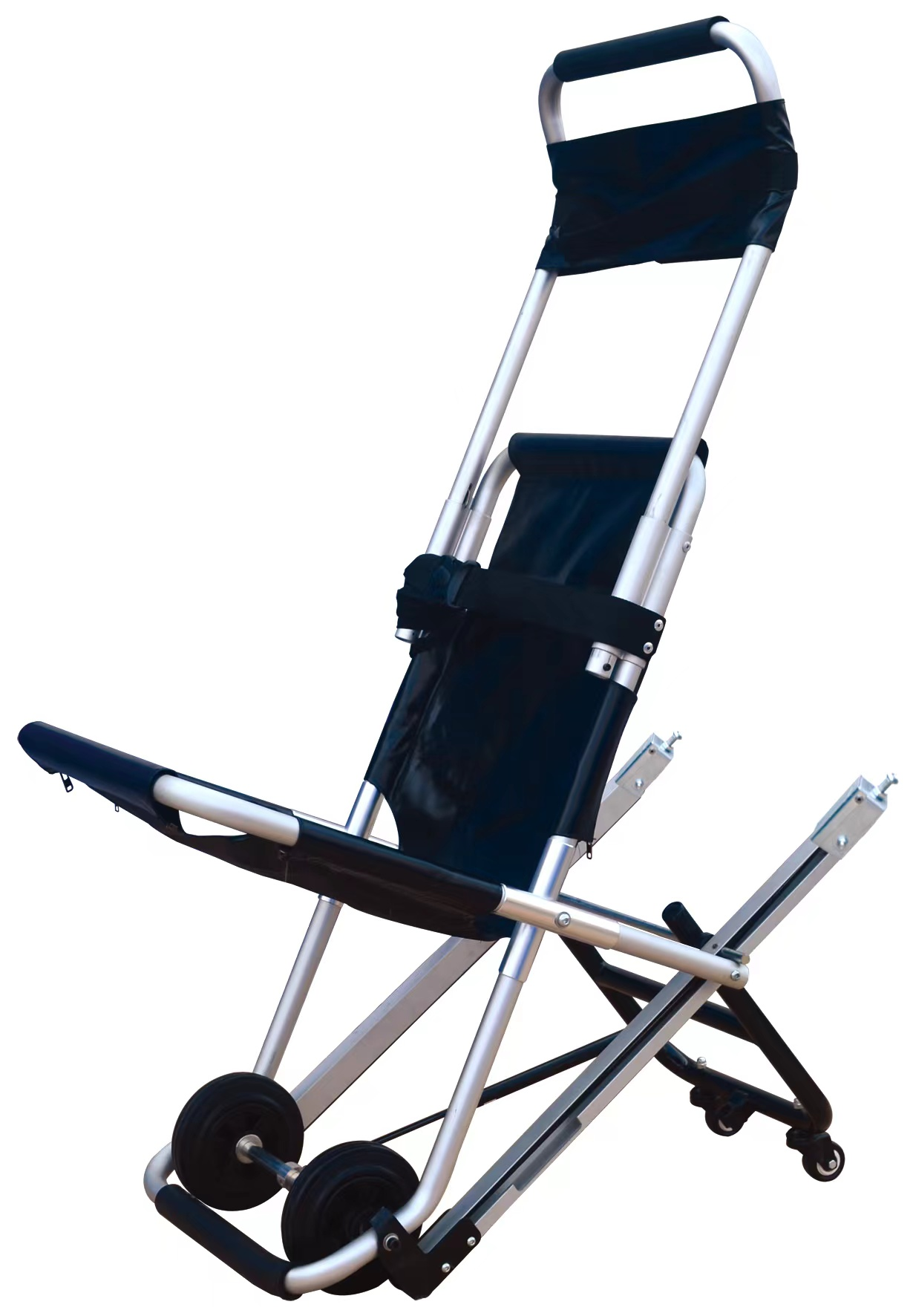 Non-slip grips on the rear and front handles help rescuers maneuver the Aluminum Stair Chair easily.