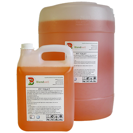 Pour 1 litre into the toilet mixed into 25 litres of water and pour into the long drop or pit toilet. Repeat for 3 days in a row and then once a week for a month. Repeat bi- monthly to maintain the toilet. |