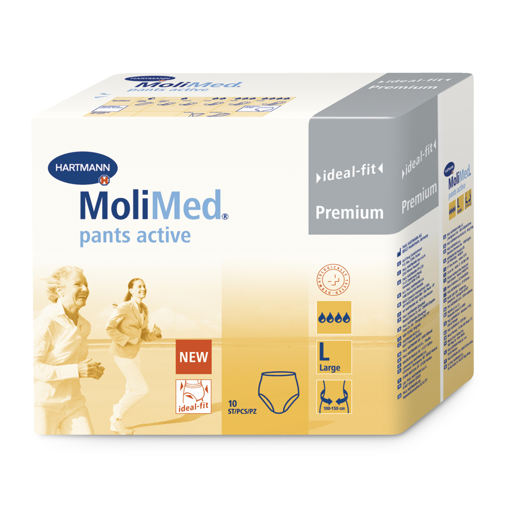 MoliMed pants active is a discrete pull up with an integral absorbent liner for active people with urinary incontinence, the major features are safety, comfort, and privacy. The skin-friendly soft pull up with its anatomical form wears like regular underwear.